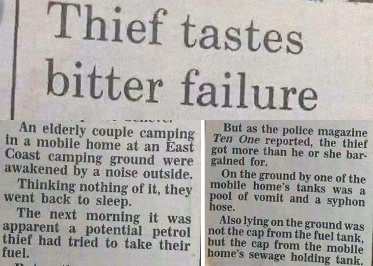 If you ever needed more proof that stealing is a terrible idea, this man’s story will drive the point home. In the dead of night, a thief crept up to an elderly couple’s mobile home, hoping to siphon fuel from their gas tank. The couple heard a noise but dismissed it as nothing serious and went back to sleep. When morning came, they discovered the shocking truth: someone had attempted to steal their fuel, but things didn’t go as planned. Instead of hitting the gas tank, the thief mistakenly siphoned from the sewage tank