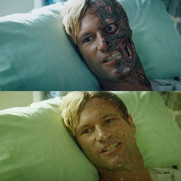 Could anyone else have pulled off such a chilling transformation? Add in some expertly crafted prosthetics, and Eckhart’s portrayal became even more convincing, proving that he didn’t need to rely solely on special effects to leave a lasting impression.